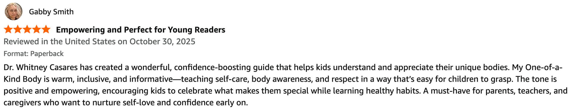 My One-of-a-Kind Body is designed to help kids understand and appreciate their bodies for what they do, not just how they look. With playful, inclusive illustrations and age-appropriate language, My One-of-a-Kind Body invites children to explore the incredible ways their bodies help them learn, play, feel, and grow.